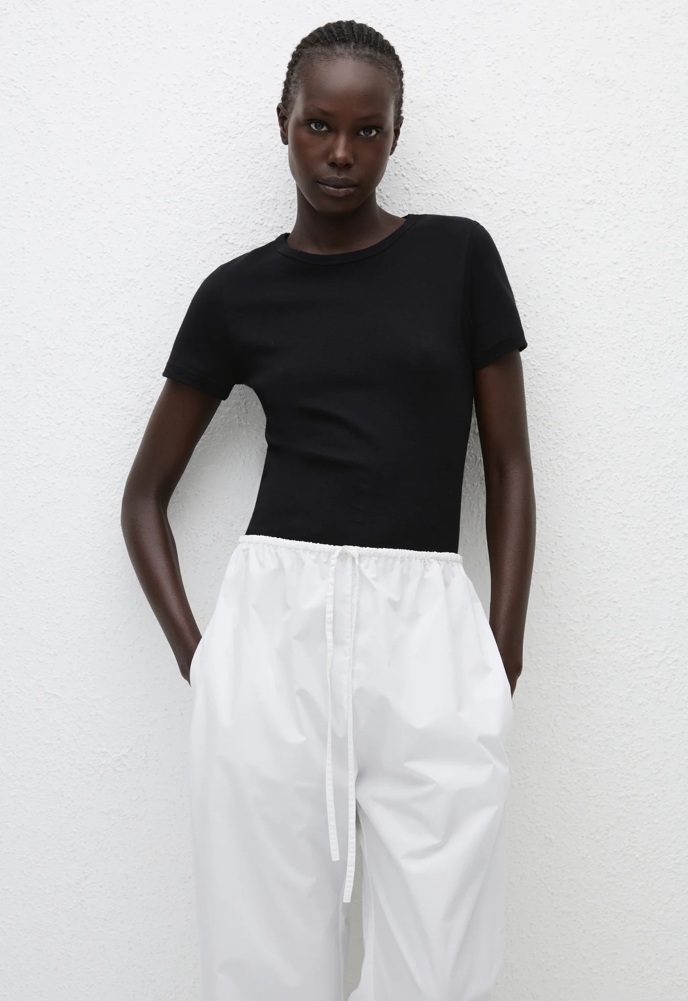 An everyday baby tee featuring a crew neck and flattering short sleeves. Made from 100% cotton, this tee features a self bound detail around the neck, and a coverstitch hem finish on the sleeve and body. Wear tucked in with our Long Chino Short or Relaxed Jean and pull together with our Boyfriend Belt.