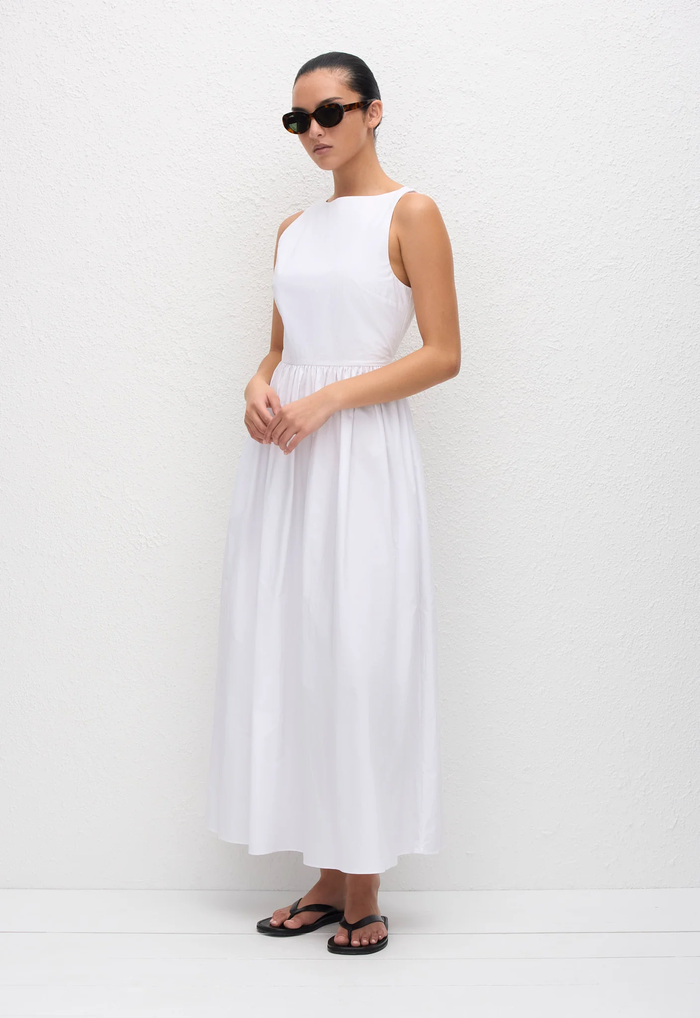 Introducing the Open Back Midi Dress, featuring inseam pockets and an open back for a delicate look and feel. Wear with strappy sandals for celebrations or long lunches under the sun.